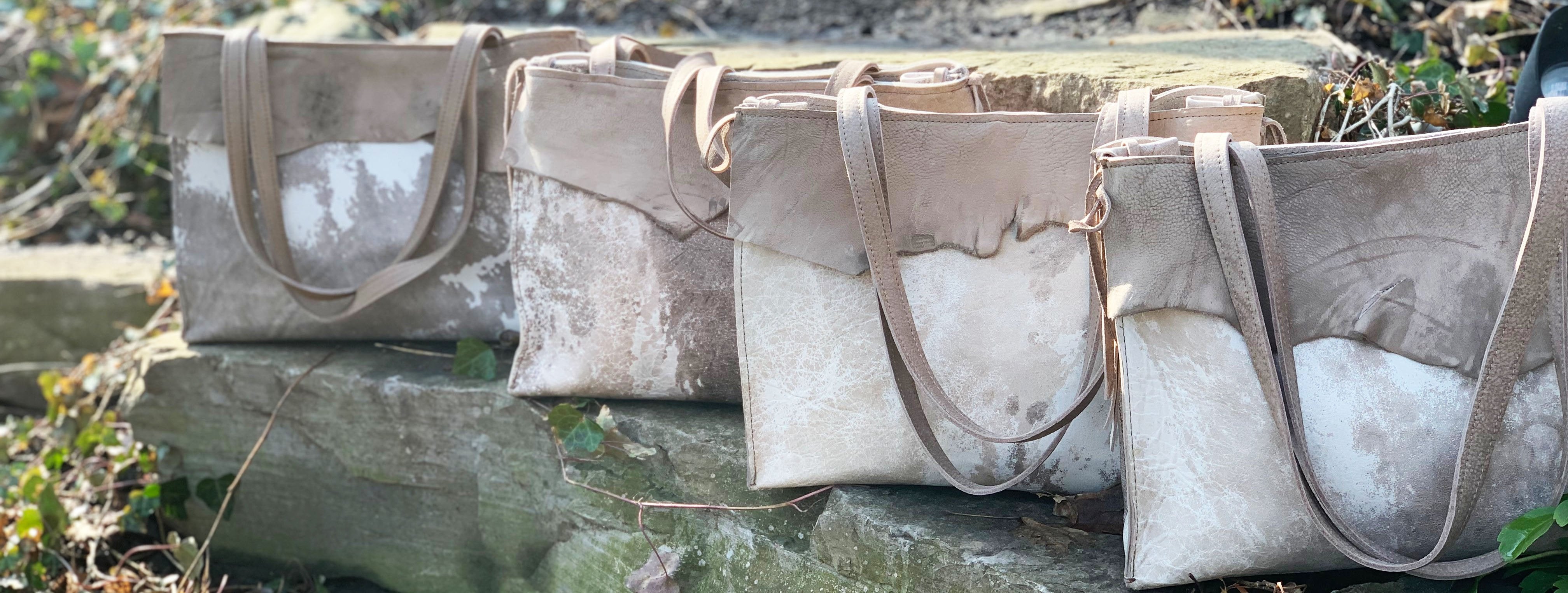 Beautiful and durable, what more could you ask for. The unique coloring and markings on this leather, give each tote it's own charm. Generous side tied gussets give you plenty of room to carry all you need without the feeling of carrying a big bag.